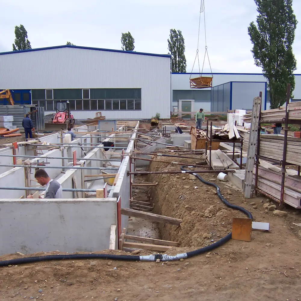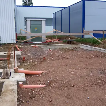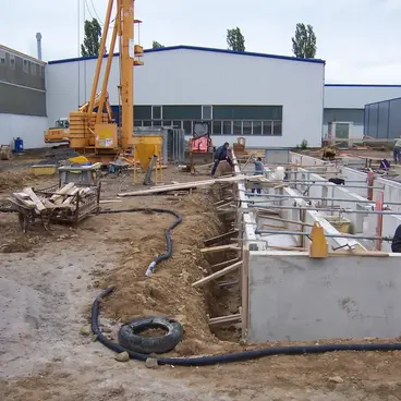 Rohbau inklusive Erdarbeiten und Entwässerungsarbeiten für den Neubau einer Lackieranlage eines Industriekunden