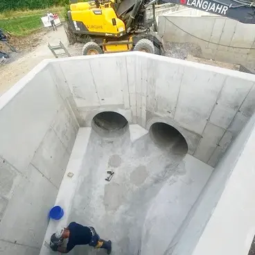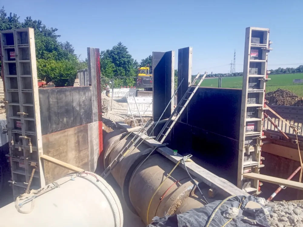 - Tief‑ und Rohbauarbeiten inklusive Wasserhaltung, Baugruben, Leitungsverlegung und Zuwegung