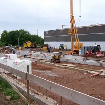 Rohbau inklusive Erdarbeiten und Entwässerungsarbeiten für den Neubau einer Lackieranlage eines Industriekunden